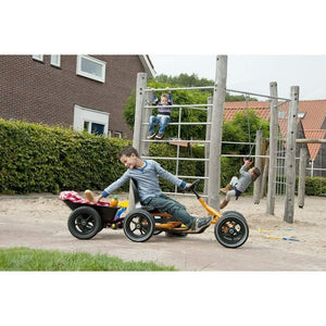 A go-kart is even more fun in combination with a trailer. The BERG Trailer L is made for the BERG Buddy and Rally platform. Not only is the trailer useful for transporting things, but its black colour is also super cool! Playing outside becomes even more fun when you can take all your stuff with you on an adventure. Note: towbar is not included. Get it here.