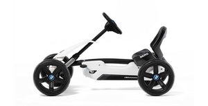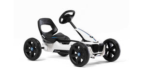 The collaboration between BMW and BERG has reached a new high-point with the BERG Reppy BMW. The recognisable grille, headlights and spoiler turn this go-kart into the Reppy that everyone will want. The wide rims with EVA tyres offer grip and comfort. Pedalling the Reppy is really light due to the bearings and direct-drive and the lowered seat turns the drive into an unforgettable, BMW experience. The sounbox rounds it all off. The practical details have been well thought out too. The seat is easy to adjust, the tyres are quiet and won't puncture. The Reppy is also easy to carry due to the handle integrated in the frame. BMW makes driving cool and the Reppy BMW now offers this experience to kids too.