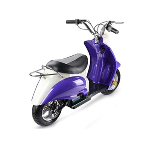 The MotoTec 24v Electric Moped Purple is great for driveway and parking lot fun, cruise around cones and speed through trails with ease.