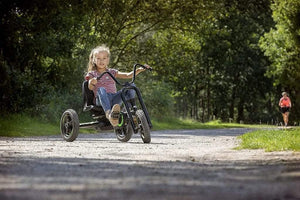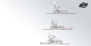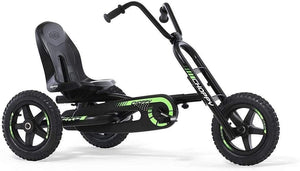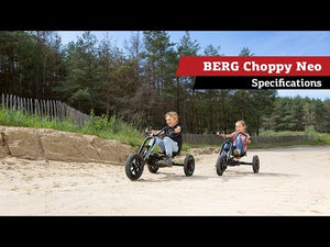 The BERG Choppy Neo Go Kart is the latest variant of the Choppy platform. Trendy black colours, off-road tyres and stunning graphics turn the NEO into a super-cool option. With motorbike steering column, you can be the King of the Road. The Choppy NEO has a single front wheel, just like a motorbike. This makes the go-kart extremely versatile. The BFR system means you can ride easily, brake and reverse. So you'll never get bored with playing! The Choppy Neo also has comfortable air tyres and an easily adjusted seat so that all kids can enjoy it.