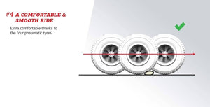 • • The four wheels and swing axle keep you grounded firmly and safely.